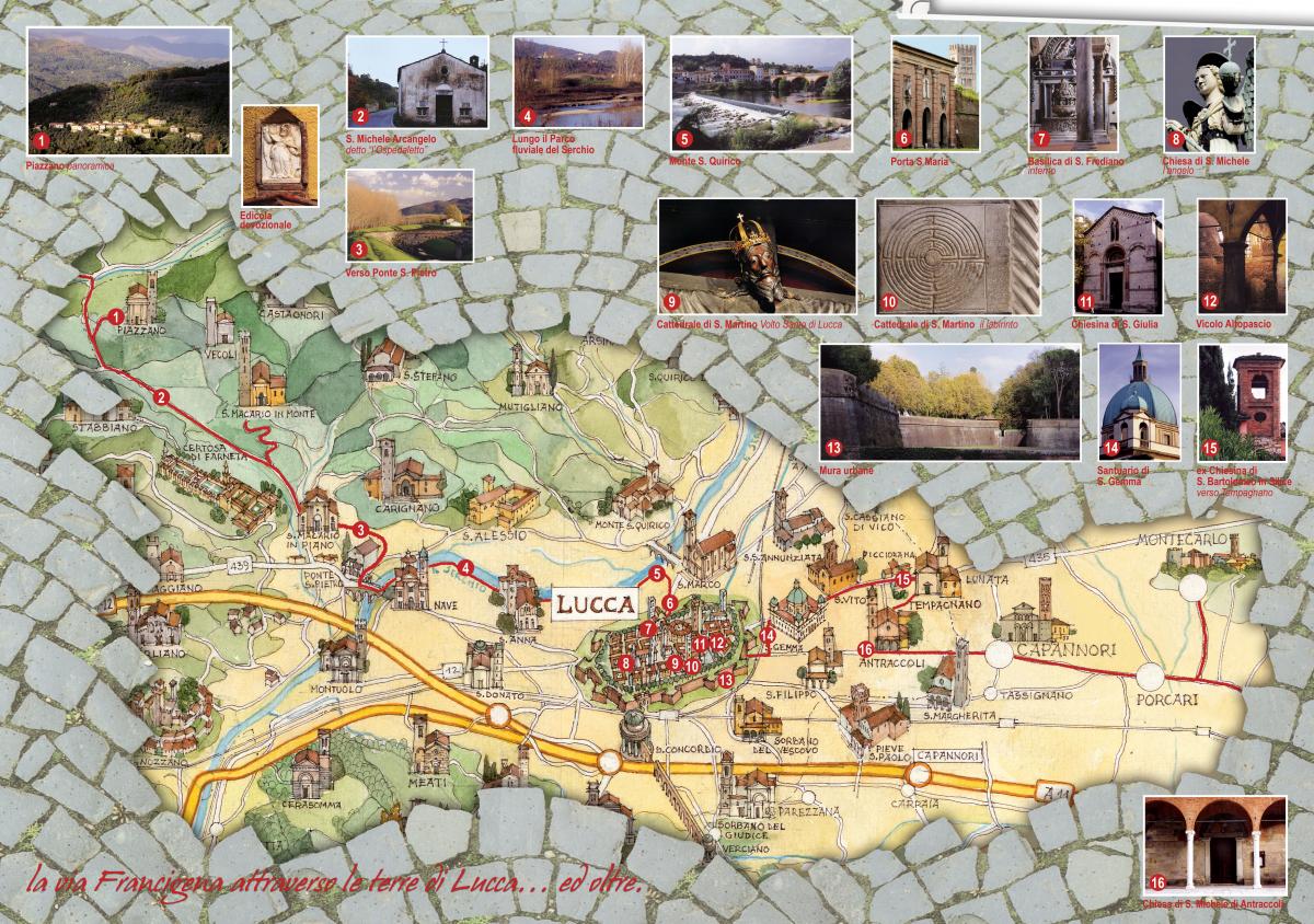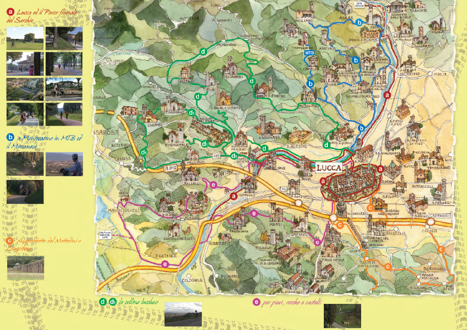Tutte le mappe e gli itinerari scaricabili sulla città di Lucca e dintorni.