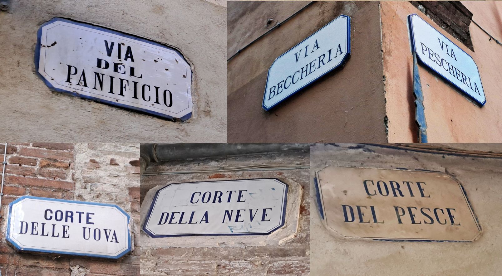 Da via Pescheria, sulla destra, si passa a via Beccheria. Un toponimo derivante dal tardo latino bocharîa e bocharius che attraverso il francese medievale indicano rispettivamente la macelleria e il macellaio, italianizzati in beccheria e beccaio.