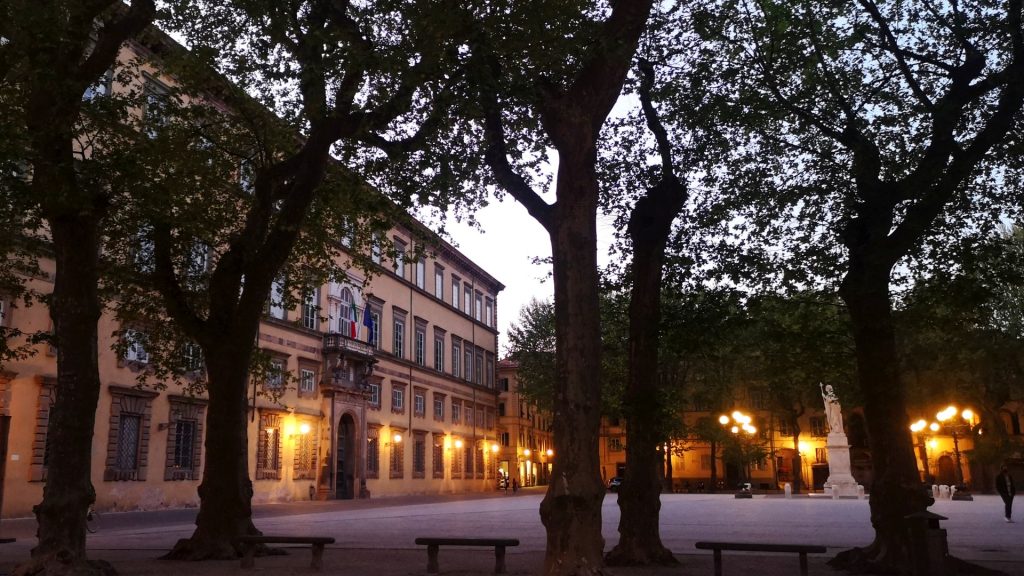 Nella trasformazione voluta da Elisa, anche Piazza Napoleone ha un ruolo centrale. Al posto di un intero isolato demolito, nacque una grande piazza aperta davanti al Palazzo Ducale: un simbolo di potere e rappresentanza. Gli olmi piantati per delimitare lo spazio furono poi sostituiti da platani, che oggi formano una cornice verde alla piazza. All’interno del palazzo, Elisa volle anche un teatro privato, dove si esibì Niccolò Paganini.